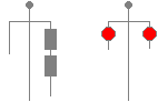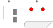 By Day : Two drums one over the other at the yard arm.