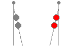 By Night: A white light over a green light on the side on which the passage is clear. Two