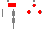 By Day: A red flag at the masthead & 2 drums one over